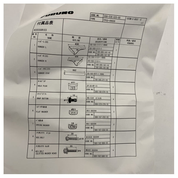 Furuno FP03-09830 Staffa per display per monitor MU-231CR